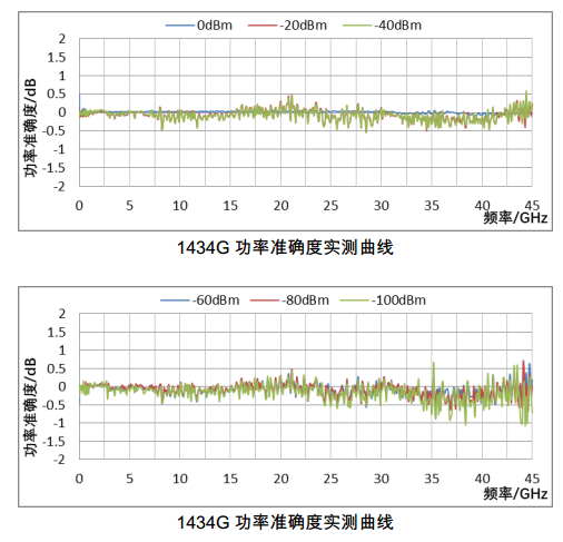 1434支持電科思儀等多家廠商的功率探頭進(jìn)行測試顯示,并能使用功率探頭進(jìn)行自身的功率平坦度校準(zhǔn)補(bǔ)償。